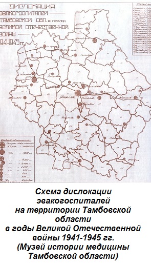 За весь период Великой Отечественной войны на Тамбовщине было сформировано 103 эвакогоспиталя. По самым скромным подсчётам через них прошли лечение 500 тысяч солдат и офицеров. Успех в работе госпиталей был обеспечен слаженной системой государственного здравоохранения, тесной связью с медицинской наукой.