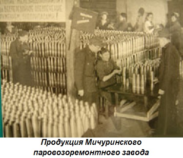 Ассортимент военной продукции крупнейших предприятий области был разнообразен. Так, на заводе «Ревтруд» изготавливались корпуса 122 мм снарядов и снарядов для реактивных установок - «Катюш», ротные 50 мм миномёты, спаренные зенитные установки, автоматы ППШ, гранаты, бутылки с горючей смесью, противотанковые ежи, взрыватели для партизанских мин; ТВРЗ - бронепоезда, санитарные и банно-прачечные поезда, корпуса 82 мм мин; «Комсомольце» - миномёты, авиационные и морские приборы, оборудование для производства пенициллина, осуществлялся ремонт вооружения и боевой техники. Мичуринский паровозоремонтный завод, помимо ремонта и оснащения бронепоездов, осуществлял выпуск аэродромного оборудования. Важное значение для фронта имел выпуск мичуринским заводом им. В.И. Ленина поршневых колец к двигателям внутреннего сгорания. Крупнейшим в прифронтовой полосе производителем взрывчатых веществ являлся завод № 204 в г. Котовске. Одним из ведущих производителей шинельного сукна в стране во время войны была Арженская суконная фабрика в Рассказове, спирта - Новолядинский спиртзавод. Высококачественный песок из тамбовских карьеров в годы войны поступал на Куйбышевский авиационный завод, являясь необходимым компонентом при изготовлении форм для отливки корпусов авиадвигателей".