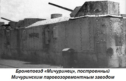 Для боевых действий в полосе железной дороги предназначались бронепоезда, использовавшиеся для противотанковой обороны крупных железнодорожных узлов, станций, выгрузки войск и других важных железнодорожных объектов. В сентябре 1941 года на Мичуринском паровозоремонтном заводе в рекордно короткие сроки был построен бронепоезд. Его назвали «Мичуринец». Другой такой же бронепоезд «тамбовский рабочий» построили труженики Тамбовского вагоноремонтного завода. «Летучие дьяволы», как называли немцы бронепоезда, курсировали по маршруту «Клин – Калинин – Бологое – Осташково – Торопец», затрудняя продвижение врага к Москве.