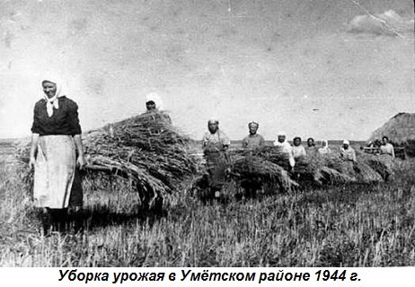 В военные годы уровень эксплуатации колхозного крестьянства достиг чудовищных размеров. Выполнение плана поставок сельскохозяйственной продукции государству требовало нечеловеческих усилий. В период сельскохозяйственных работ рабочий день длился в колхозах с 4-5 часов утра и до 10 вечера. Скирдование, молотьба и вывоз хлеба на заготовительные пункты осуществлялись круглосуточно. Большинство работ выполнялось вручную.