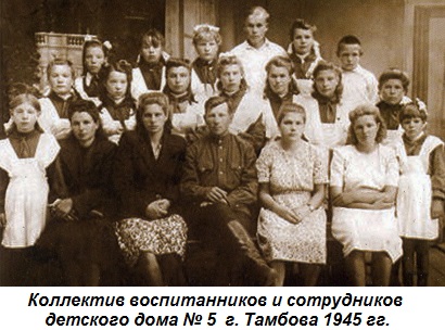 Настоящим подвигом людей тамбовского тыла стало сохранение жизни и здоровья десяткам тысяч детей-детдомовцев, эвакуированных в нашу область. Их направляли в детские дома, Дома матери и ребёнка на патронажное воспитание. К декабрю 1941 г. было размещено более 60 детских учреждений, эвакуированных из Могилевской, Смоленской, Курской и Московской областей. В них насчитывалось около 5 тыс. воспитанников, для некоторых из них Тамбовщина на всю оставшуюся жизнь стала второй родиной.