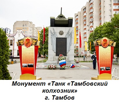 Морозов, Е. А. Монумент «Танк» // Наш Тамбов / Е. А. Морозов. – Тамбов : Редакция газеты «Тамбовский вестник» 2001. - С. 20-21.